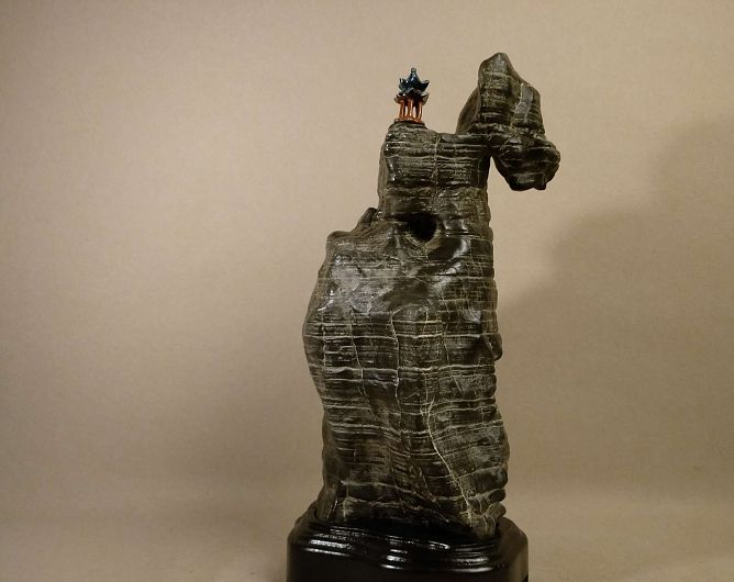 文房雅石,文人山子此石质地坚硬如铁包浆润泽,音质清脆悦耳,山形古朴,沟壑自然,体势圆润饱满,有水有山,整个山势看上去无险无奇,恬静如画,自然气息非常浓厚,显得很是沉静清逸,温馨祥和,四平八稳