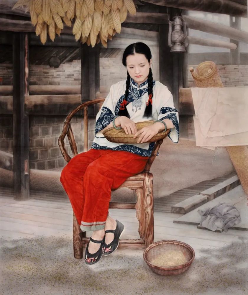 李乃蔚正是从思想情感的表达和人文精神的诉求中去推进当代工笔人物画的极致写实,正是这种稳定持续的精神追求和文化积累,他的作品才渗透一种鲜明的个性特征,才拥有稳定的艺术质量。