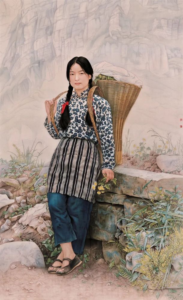《山菊 》纸本工笔 220cmx135cm全国中国画人物画展览银奖