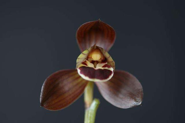 它就是矮种墨兰“墨氏荷”,它是一款非常经典的兰花品种,它的花色是紫黑色,这也正是它最大的观赏点,这种花色在兰花中非常之罕见,开花后给人的感觉非常神秘,但是却不失高雅。